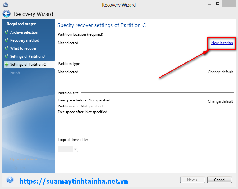 Bước 10: Lại bấm tiếp chuột chọn New location.