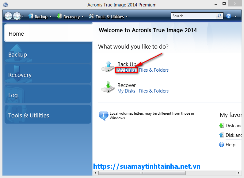 Bước 1: Bấm chuột chọn My Disks trong phần Back Up để tiến hành tạo file TIB chuẩn UEFI.