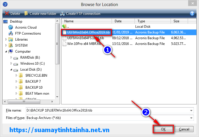 – (3) Chọn đường dẫn để lưu file TIB và đặt tên cho nó tại khung File name.