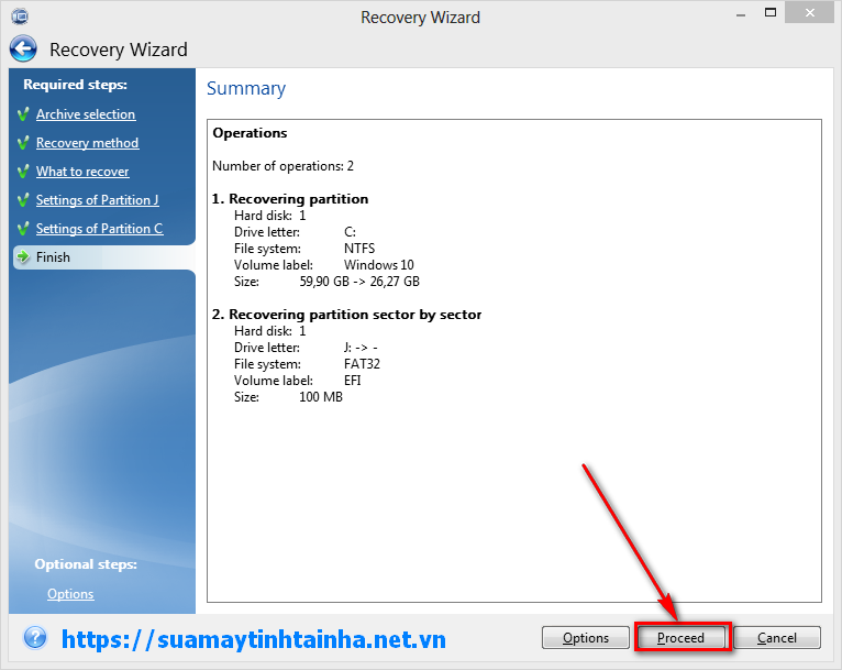 Bước 13: Bấm chuột vào nút Proceed để phần mềm bắt đầu tiến hành bung file TIB.