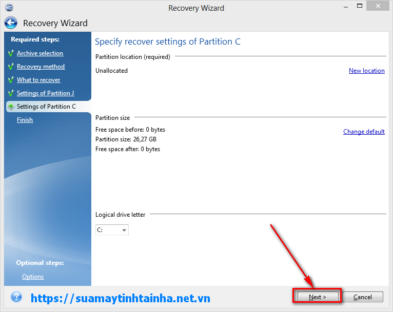 Bước 6: Tích chọn vào 2 phân vùng như hình bên dưới, tuyệt đối không tích vào dòng MBR and Track 0. Sau đó bấm chuột chọn Next.